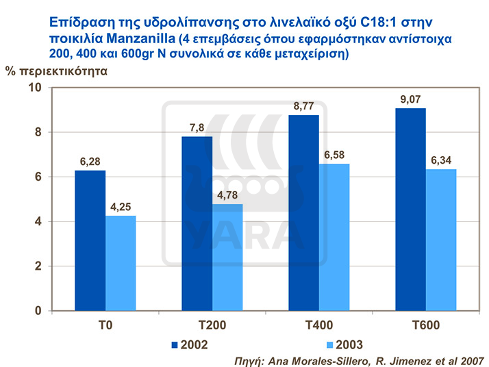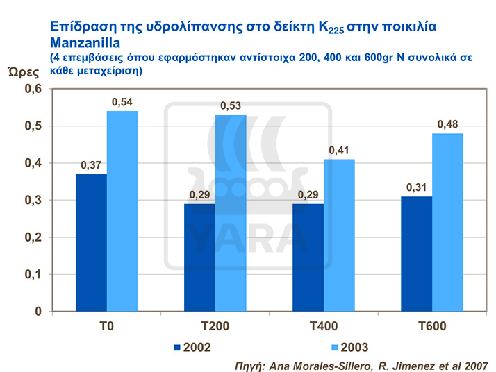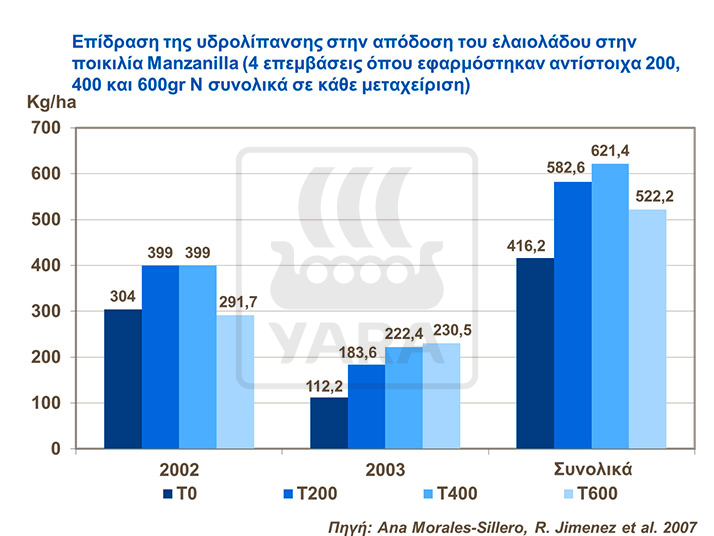 Η σωστή ισορροπία μεταξύ της απόδοσης και των ποιοτικών απαιτήσεων του ελαιολάδου της τελικής παραγωγής κατά τη διάρκεια μιας καλλιεργητικής περιόδου είναι σημαντική και θα πρέπει να λαμβάνεται υπόψη όταν σχεδιάζεται το πρόγραμμα της υδρολίπανσης.